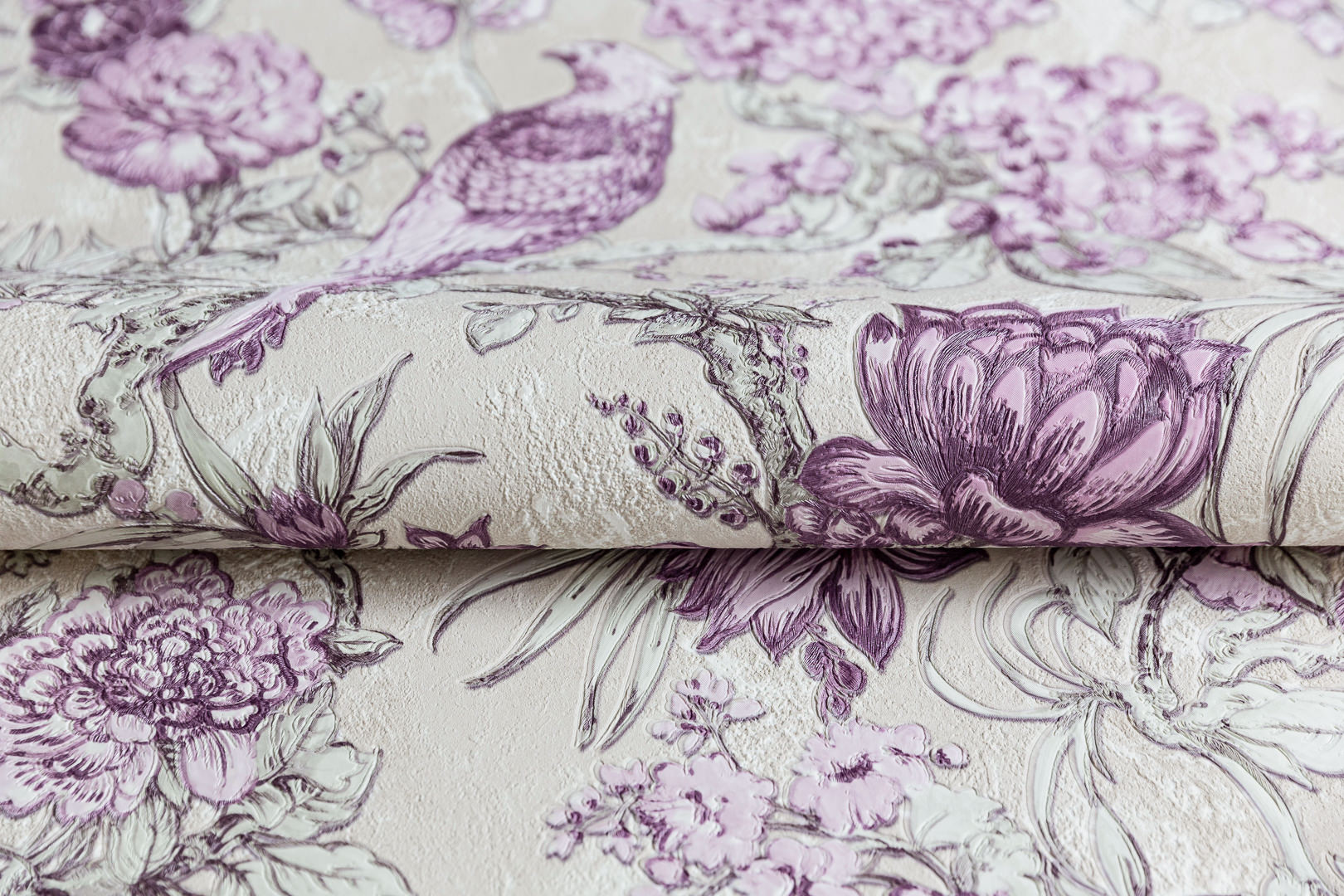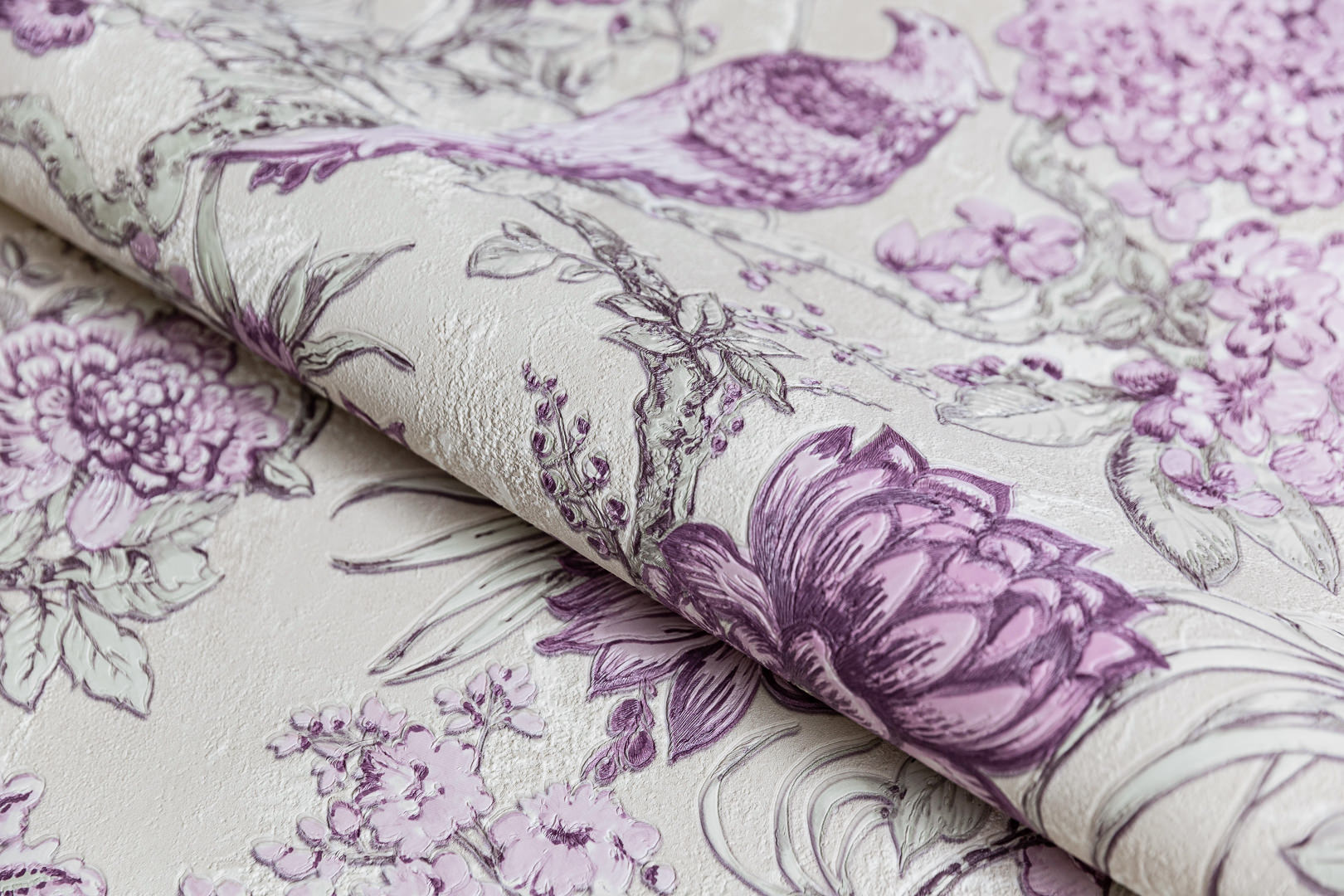 Обои виниловые Азулежу мотив, бежево-фиолетовый