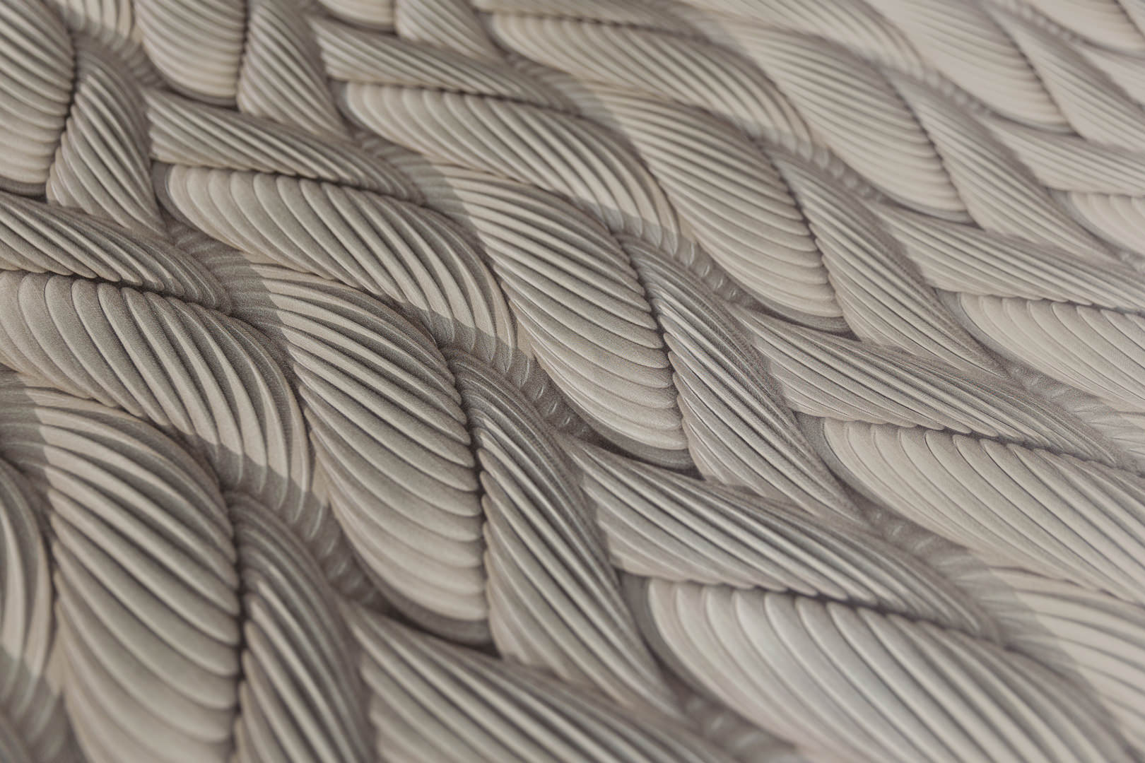 Фактура ? При технологии горячего тиснения пластизоль особого качества наносится равномерным слоем на всю поверхность основы (флизелина) и застывает. Рельеф создается при помощи специальных тиснильных валов. | Рельефные |