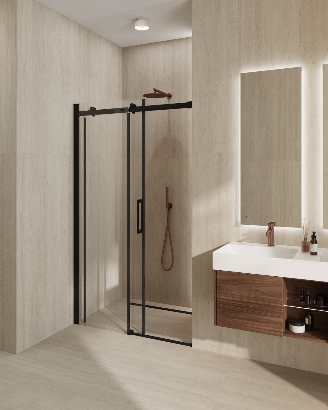 Конструкции дверей, панелей и перегородок предлагаются в цветах «брашированный никель» и «чёрный матовый». В дополнение к вашей душевой зоне можно также приобрести набор с дизайнерской ручкой и роликами, выполненными в благородном оттенке золота. Это расширяет палитру цветовых решений Кристалло.