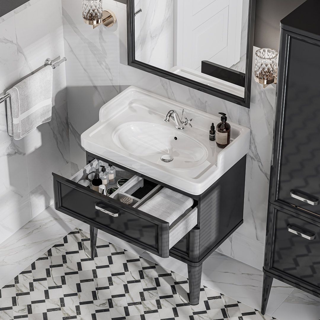 После рестайлинга классические тумбы «Помпеи» выглядят ещё более привлекательно! Скорректированная форма корпуса, новый цвет в фирменной палитре — всё это освежает восприятие классической серии и создаёт новые удобства. Также в серии Помпеи теперь представлен пенал, который может быть установлен либо как подвесной, либо как напольный (ножки прилагаются в комплекте). В сочетании с раковиной и тумбой получаем исключительно изящное решение для ванной комнаты.