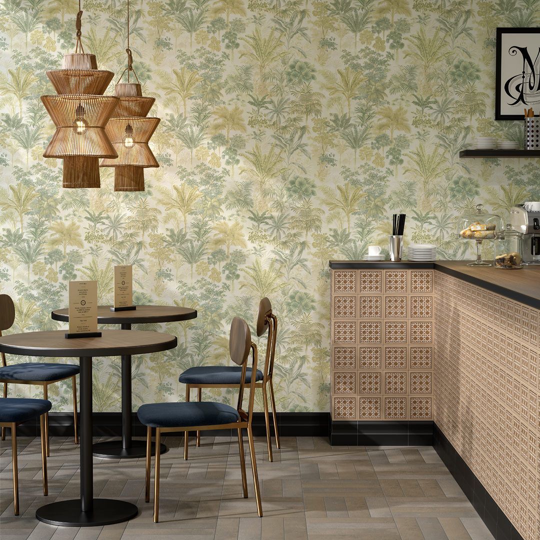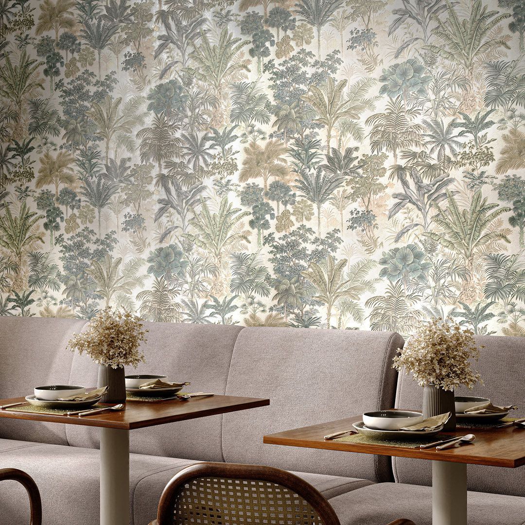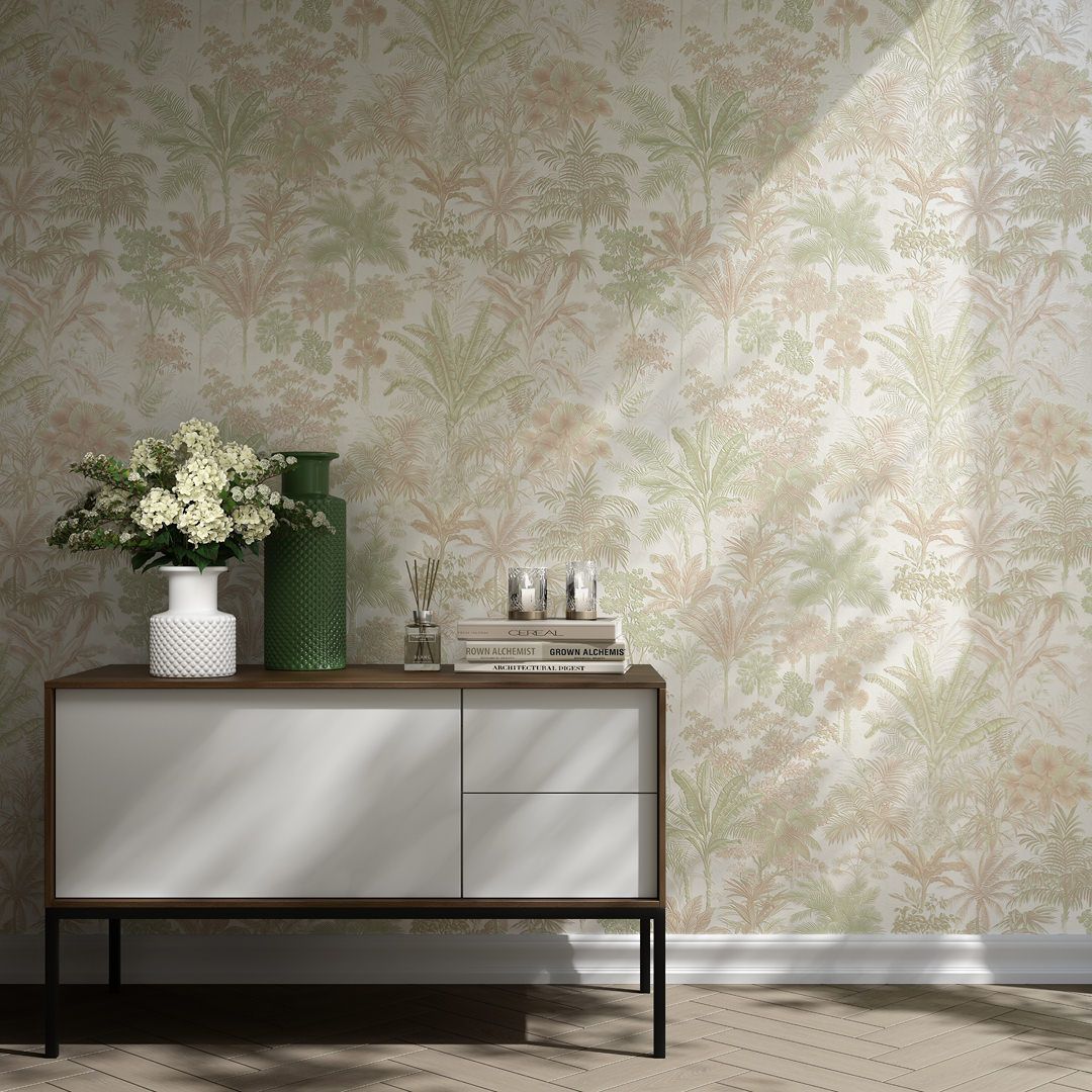 Обои виниловые Оазис мотив, бежевый, зелёный